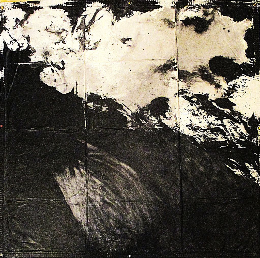 Garden Study - October 2025. Indian Ink on Unstretched Canvas Tarp. 4 Foot by 4 Foot